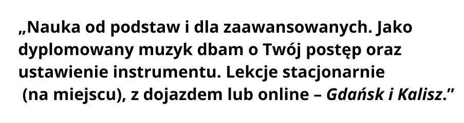 🎓 Jestem dyplomowanym muzykiem. Ukończyłem Państwową Szkołę Muzyczną II stopnia w Kaliszu (klasa gitary).
